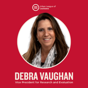 NEW ORLEANS – Today, Urban League of Louisiana (ULLA) announces Debra Vaughan as the new Vice President for Research and Evaluation. This role is responsible for cultivating and maintaining ULLA’s capacity as a community-centered, data-informed strategic learning organization and ensuring continuous innovation toward equity-focused programming and experiences for both stakeholders and staff. The Vice President of Research and Evaluation will be responsible for developing and executing a research agenda and engagement strategy focused on equity, with a strong focus on education equity, as well as driving organizational effectiveness and program evaluation activities for ULLA.