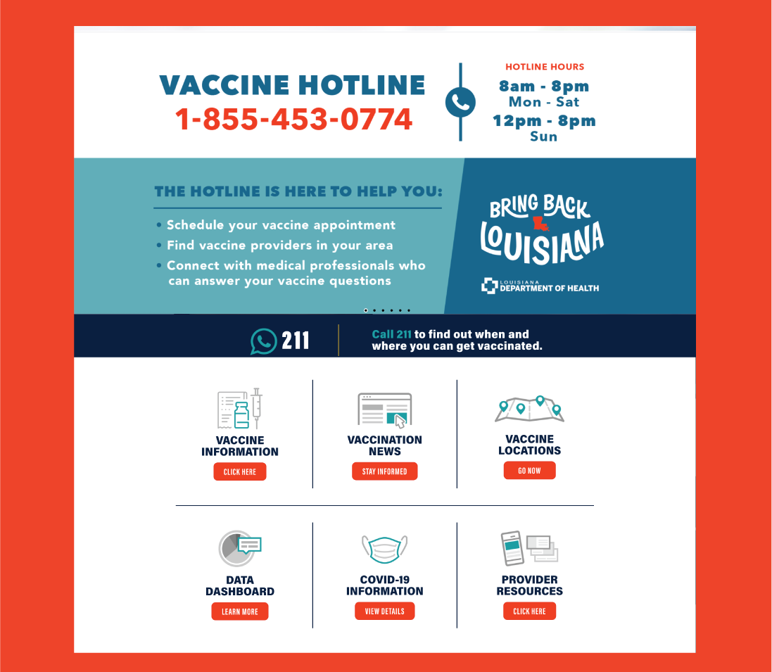 The Louisiana Department of health has developed a COVID-19 VACCINE WEBSITE.
