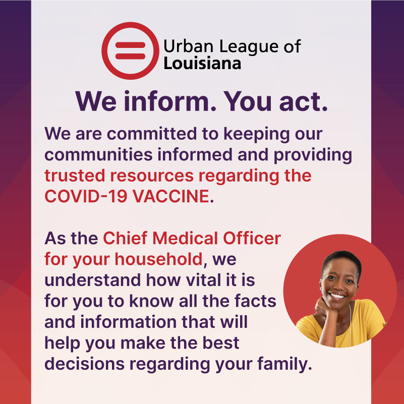 The Urban League of Louisiana is committed to keeping our communities informed and providing trusted resources regarding the Covid-19 Vaccine.