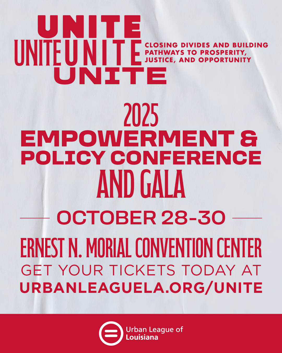 The Urban League of Louisiana’s 2025 Empowerment & Policy Conference and Gala:  “UNITE: A call for Louisiana to close divides and build pathways to shared prosperity, justice, and opportunity” will bring together community members, civic leaders, advocates, and experts for one of the state’s most impactful convenings.